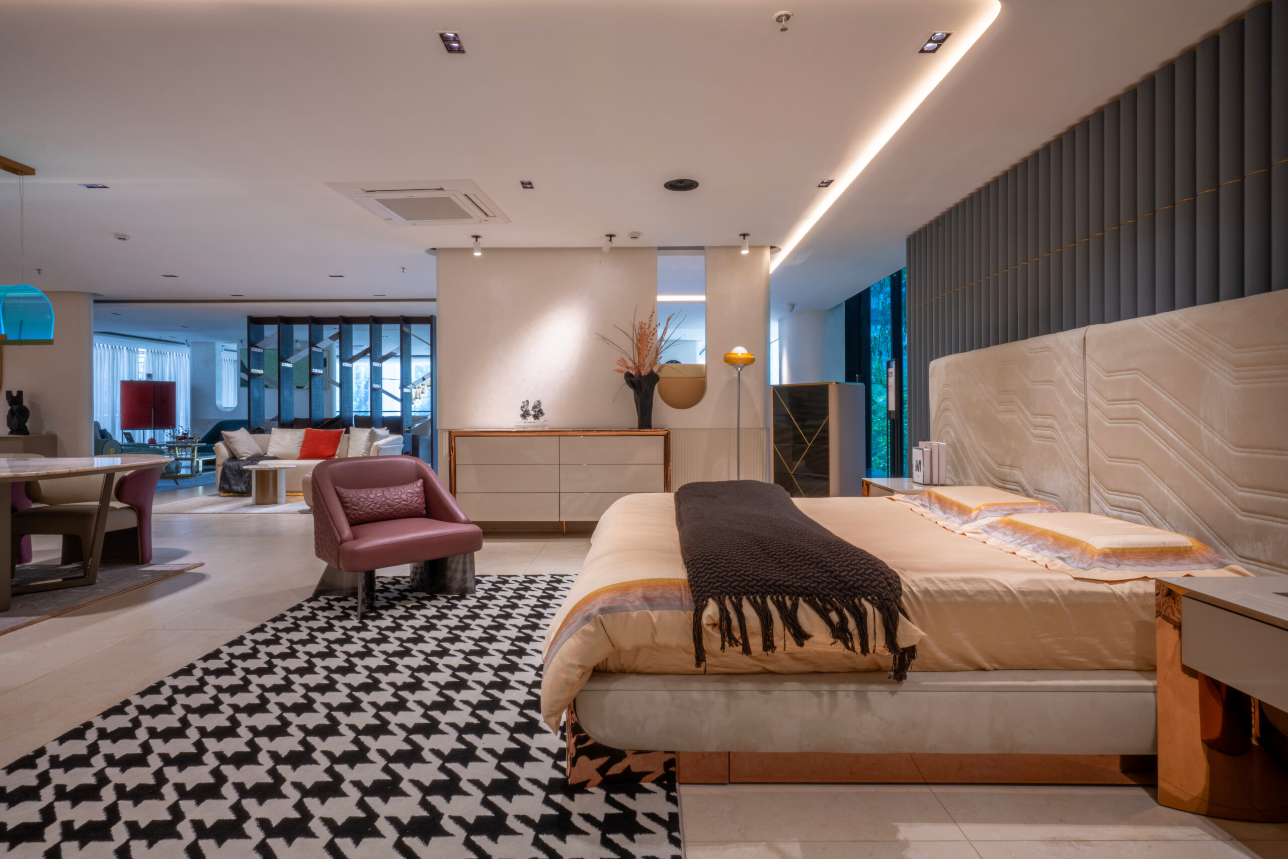 Spanning a 36,000-square-foot showroom in Jubilee Hills, Nhance showcases an extensive range of furniture for living, dining, bedroom, kitchen, and outdoor spaces. Each piece is meticulously crafted to provide a tactile experience and comfort.